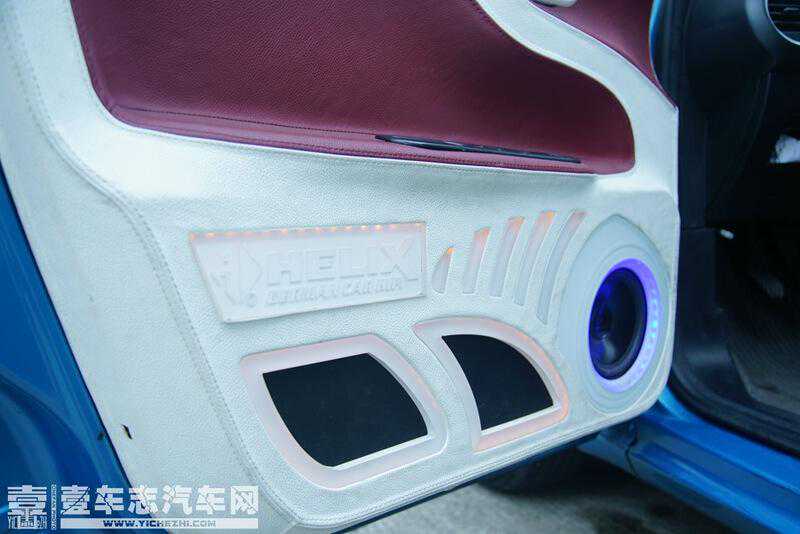 后音场则选用同样来自德国伊蔓的产品,ETA-165二分频一套,这套喇叭在声场的还原、声音的准确、音色的柔和细腻等方面都有着不错的表现。除了器材,可以看到,百乐汇在施工方面也是很有经验的,包括孔位的开槽和音响的安装等,都合丝严缝,而红白色调的皮质包裹下,整个车门看起来很年轻,特别是加入了氛围灯之后,在夜晚看起来更是激情满满,当然手感也很不错。