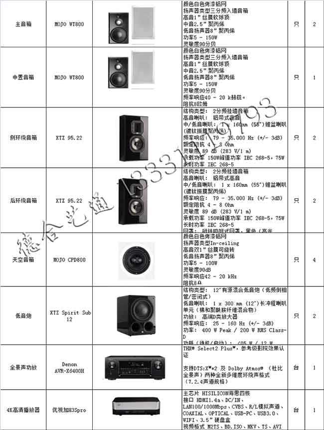家庭影院参考价格表: