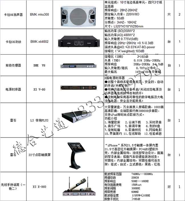 7.2.4家庭影院卡拉OK设备清单:
