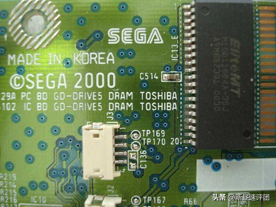打开后,做工很不错,电路设计的整齐有序,首先可以看到东芝的芯片,刚刚看的是三星Logo印在表面这会怎么又是东芝?猜测是三星与世嘉合作,然后在日本生产和设计芯片,之后再交由韩国那边组装测试