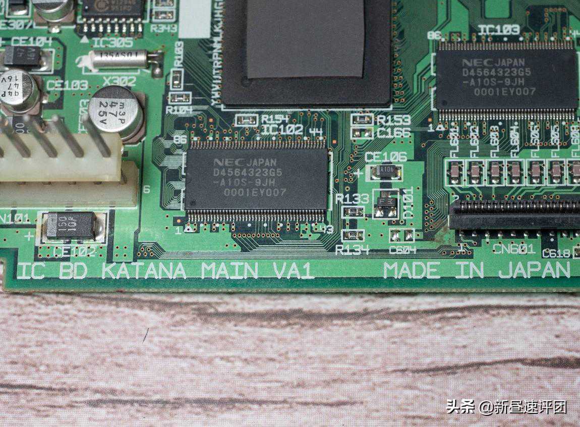 回到拆解现场,可以看到1999年产的IO板,1998年8月底,DC初版,主板型号为VA0的机型在日本发售,世嘉大概是半年左右就改进出了DCVA1