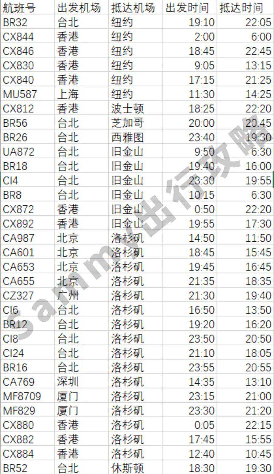 航班号:CX845,纽约-香港,12:43-05:40,每日
