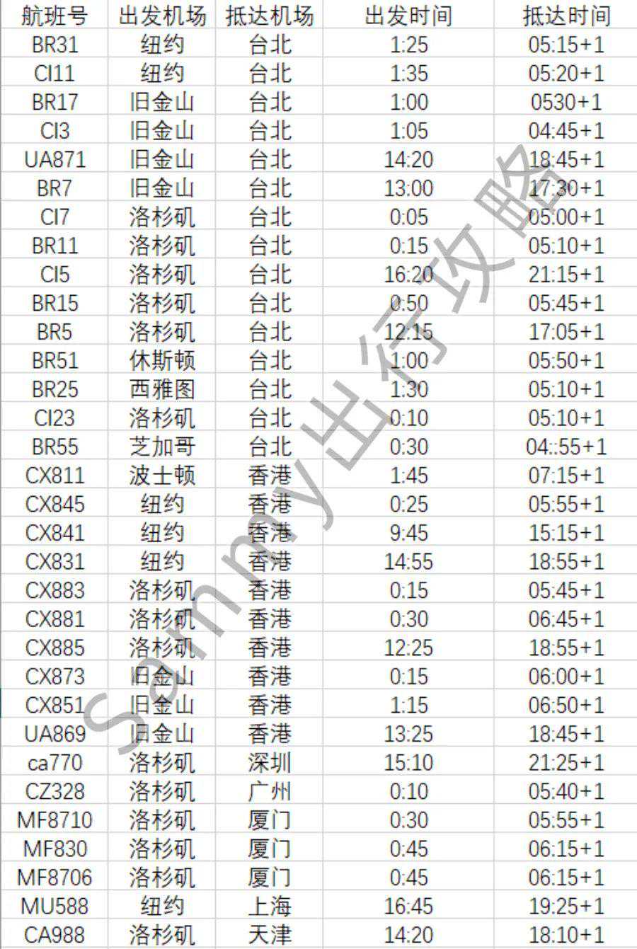 航班号:CX883,洛杉矶-香港,12:25-05:35,周日、四