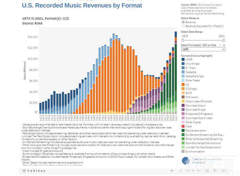 1973年以来的CD销售数据,源于RIAA