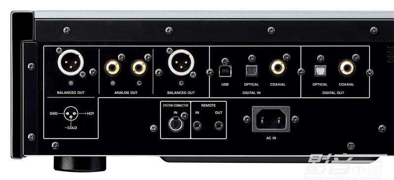 后背端口包括模拟输出和数字同轴、光纤输出,且采取镀金处理,这几乎就是“身价”的表现。标准可分离式的电源线,也便于用户换线来把玩。