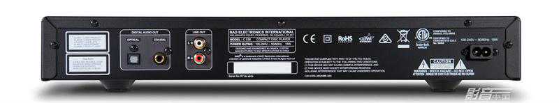 后背只有3组输出,即模拟立体声输出和数字同轴、光纤输出。电源线为8字分离设计,但这个价位应该没人会再斥资进行升级。