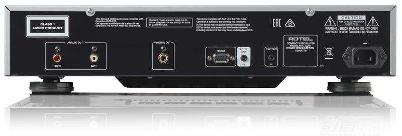 后背连接端口包括立体声模拟输出和同轴数字输出。RS232和12V触发外,更有RotelLink,后者允许将IP控制功能扩展到CD11Tribute上。