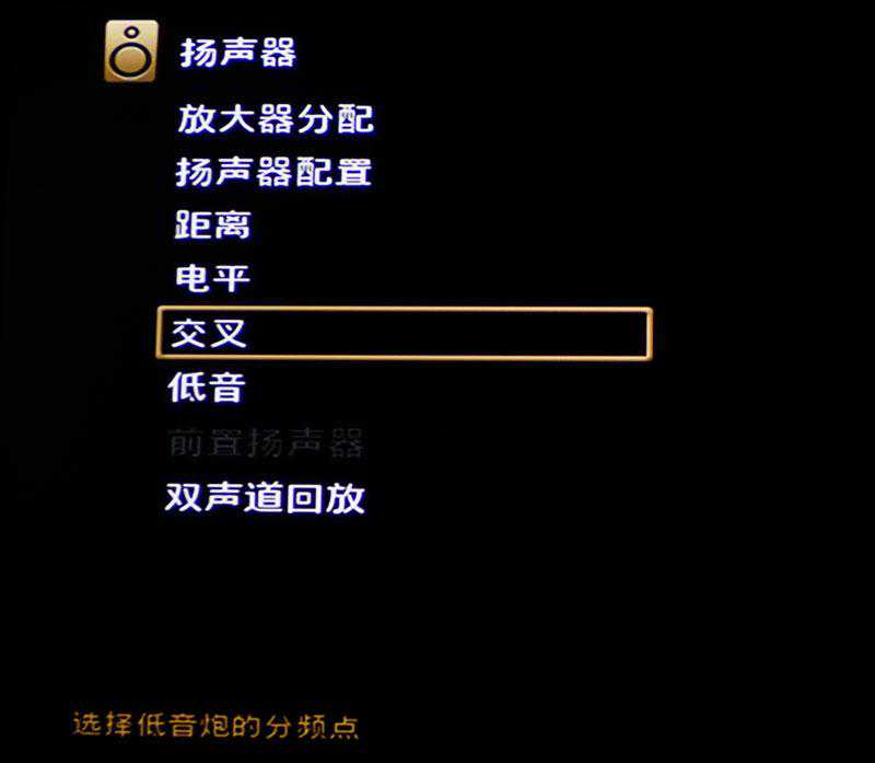 音箱的设置部分和以前基本上一样,但是低音炮的分频点有点区别