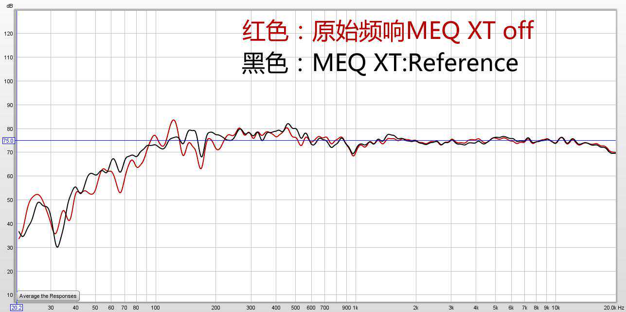 测试基标声压中75dB,可以明显看出Reference模式有效的对低频部分的驻波进行了修正,但对于中高频并没有进行粗暴的干预。