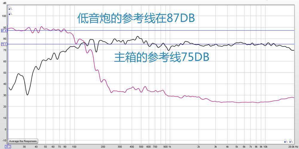 主箱的声压在75dB,而系统将低音炮提升到87dB。