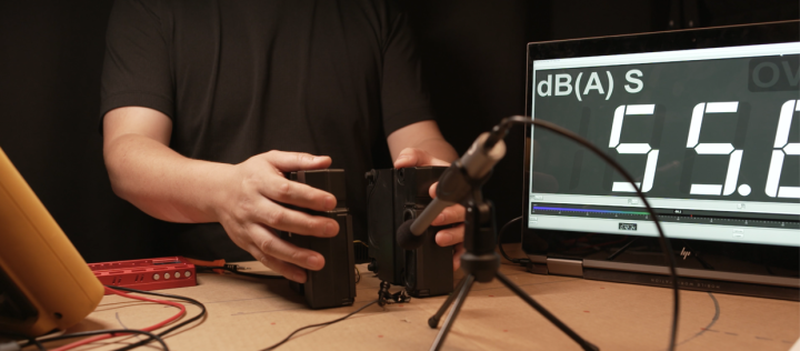 只要我们将一正一反两个扬声器正对摆放,就会出现类似于TWS耳机的降噪效果。一旦两个喇叭的位置没有对齐,消噪效果就会不见。