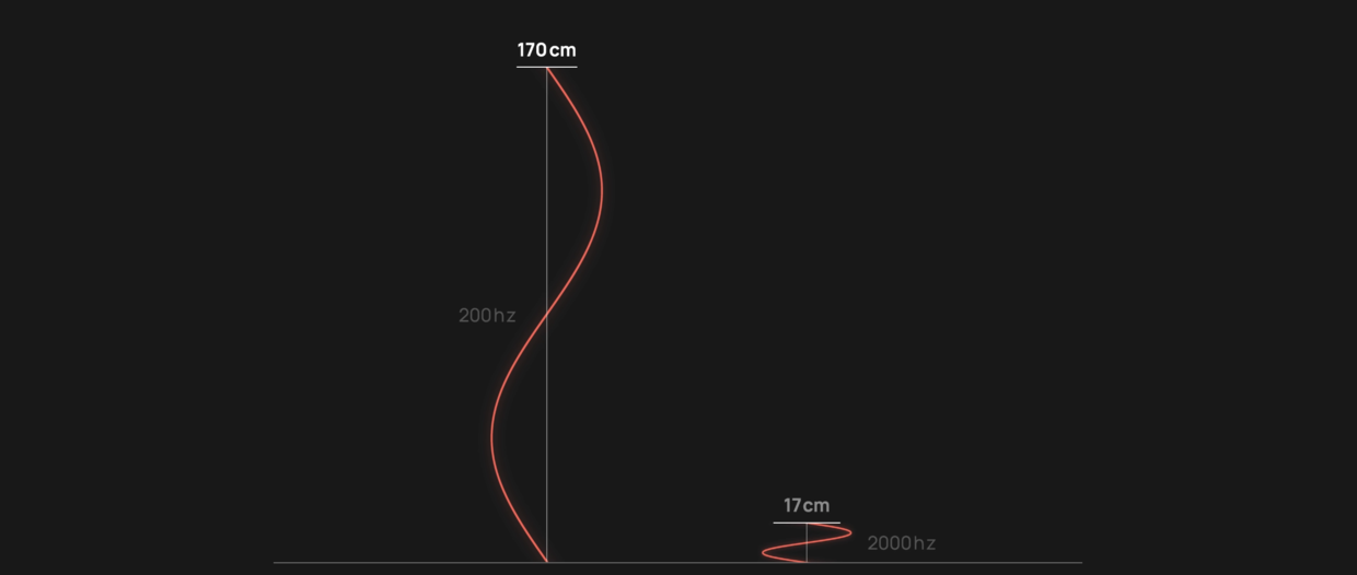 声波在空气传递速度是340米每秒,那么200Hz的低频的波长,就是一个一米七的大汉。2000Hz的波,波长是17厘米。