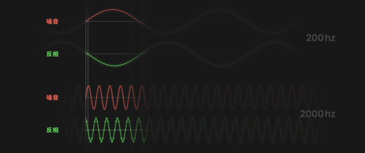这个延迟对于200Hz的长波来说,不值一提,但是对于2000Hz的高频来说,误差就有20%。所以,主动降噪不得不放弃掉高频噪音。