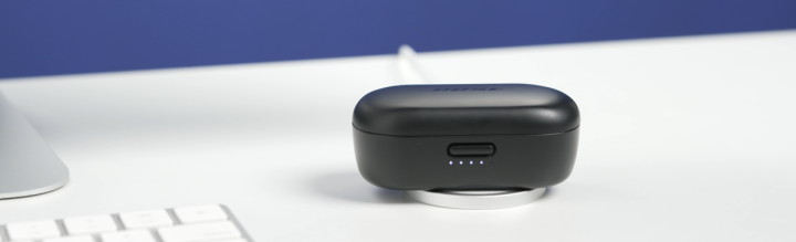 最后我们来说说使用体验,Bose的盒子虽然有点大,但是功能还比较齐全,Type-C接口,无线充电都有。最直观的就是你能看到几格电,相比只用一个灯的颜色来显示要更为清楚。开盒方式用的是按键卡扣式。