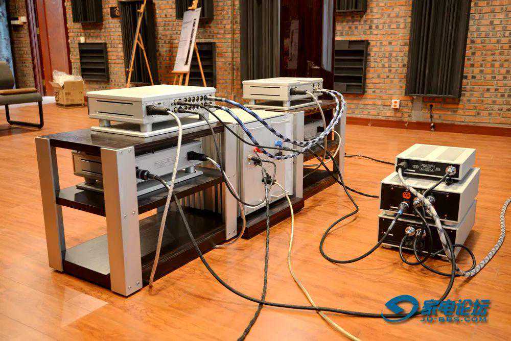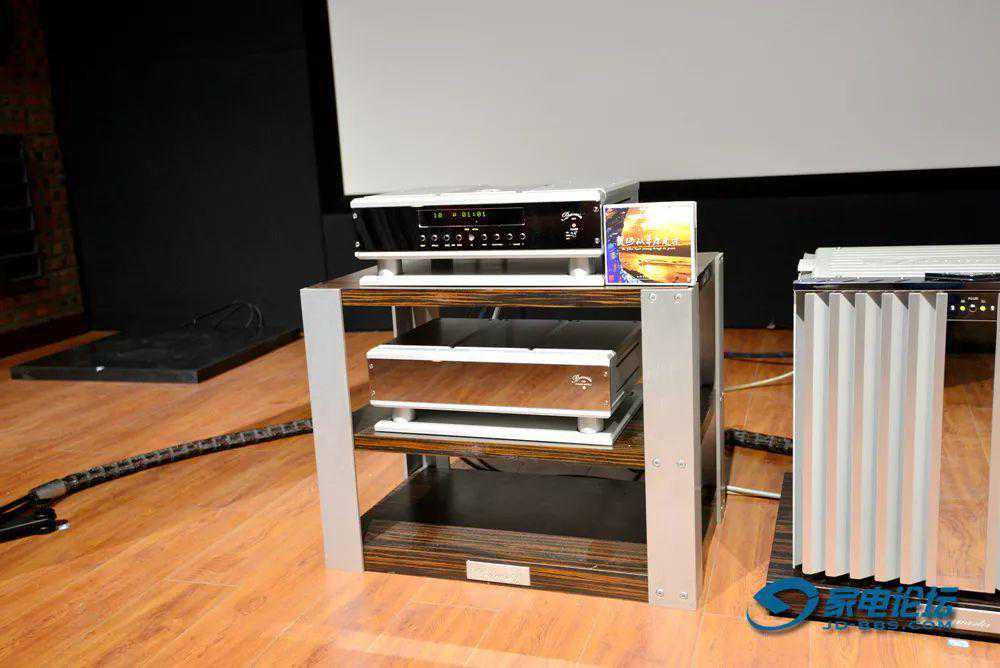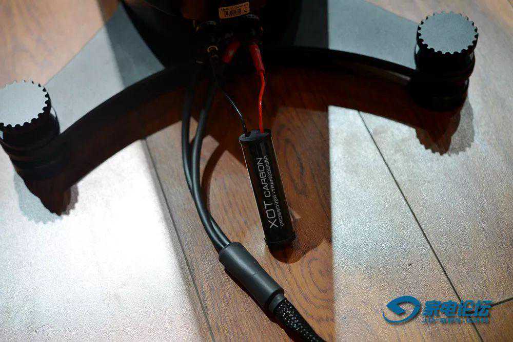另外关于低频方面,吴彤、丁经理对整体环境做了大量的测试,发觉原来Evoke50活动演示时候使用的大理石板在本次活动中没有起到很大的正面作用,也未起到预计的收紧低频作用,反而让声音整体没有灵性。所以在正式活动时候,决定将音箱直接摆放在地板上。将其调整到一个既可以获得准确的结像,低频驻波又很小的位置,然后再并联SynergisticResearchXOTCarbon“鞭炮”,达到了高音更加鲜活、声音更加立体的效果。