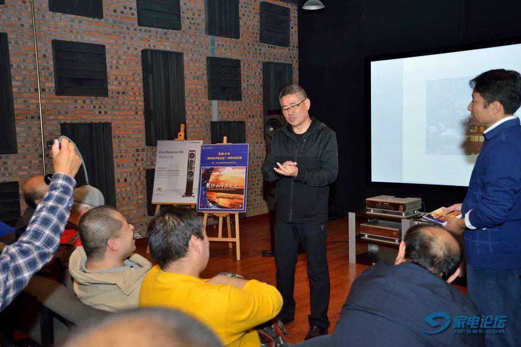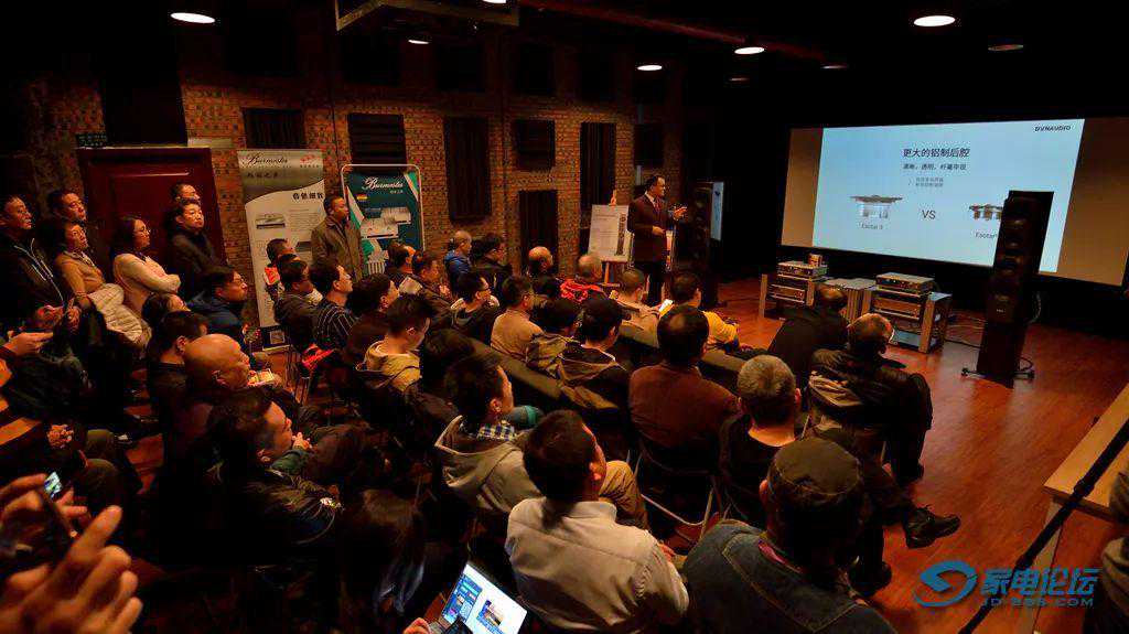 作为经典高端系列Confidence的升级,丹拿从内至外都做了相当大的改变。丁经理以活动主角Confidence60作为例子,详细向在座的发烧友们介绍了新Confidence的几项重大革新:Confidence60是全新Confidence系列的旗舰型号,它搭载了丹拿最新研发的旗舰软球顶高音单元Esotar3、丹拿最新的旗舰NeoTec低音单元和拥有“Horizon”折环和特殊的盆架设计的NeoTec中音单元。同时,丹拿最新的声学科技成果Compex障板以及重要的丹拿指向性聚焦控制(DDC-lens)等新技术纷纷亮相。新产品的内容精彩纷呈,现场发烧友也听的如痴如醉。丁经理特别提到,这次声音还没有完全发挥出新信心60的巨大潜力,如果现场有两台柏林之声909的话,相信还会有更加出彩的声音表现。