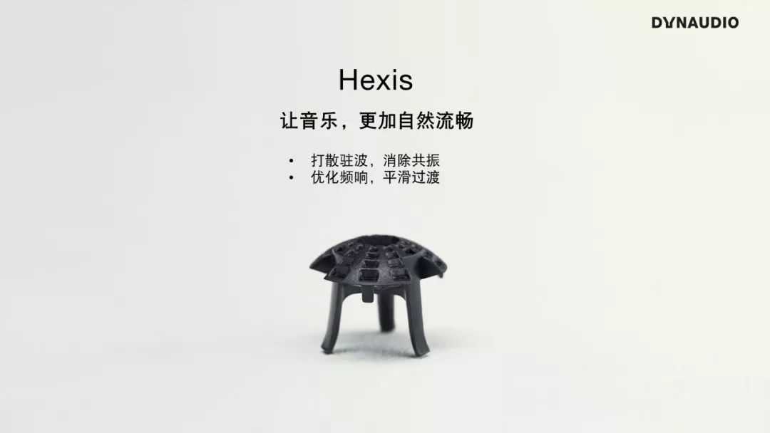 Esotar3拥有一个比Esotar2大得多的铝制后腔,能减少共振,并进一步优化阻尼,另外还使用了性能更强大的超高级钕磁体,拥有更高的效率和声压,同时功率承载能力更强。除此之外,Esotar3内部还有一个特别设计的新组件:Hexis。这是一个小型的内置球顶,能更好的抑制振膜后方腔体内的共振,同时让频率响应更为平滑。