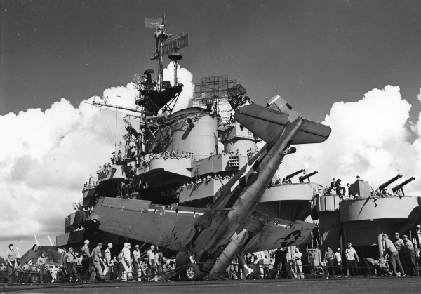 但突然爆发的朝鲜战争凸显空军缺乏前进基地时的无能为力,航母在朝鲜近海不断提供防空掩护、空中火力支援和纵深打击,对撤退中的美韩联军的生存至关重要,也是美韩联军最后守住斧山和得以反攻的关键。这也是舰载机从螺旋桨相喷气式转型的时代,还是直升机上舰的开始。这时直升机的作用还只是搜救和打捞落水的飞行员,以后扩大到扫雷、反潜甚至预警。