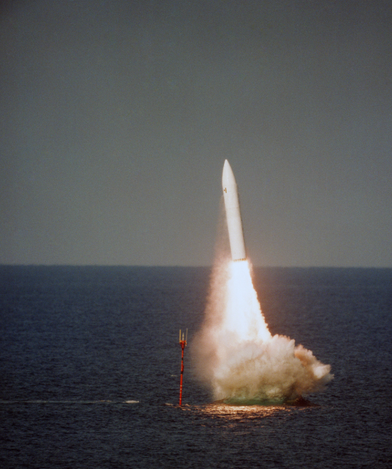 1954年,“福莱斯特”号(CV-59)作为第一艘超级航母服役,具有蒸汽弹射、拦阻索、斜甲板等特征技术,也能容纳重型舰载喷气机,道格拉斯A-3“空中武士”以4800公里的航程和5800公斤的载弹量使得海基核轰炸成为可能,超音速的北美A-5“民兵”很快接替了A-3的海基核轰炸任务,但“乔治·华盛顿”极核动力弹道导弹潜艇和“北极星”潜射弹道导弹在1959年投入使用,迅速成为海基核打击的主要平台。因此,A-5改装用于照相和雷达侦察,A-3则改装用于电子战和空中加油。一直到90年代前期,美国航母在舰上一直保留约100枚核武器,但局限于舰队作战、对苏联周边的核打击和对其他国家的小规模核打击,不再作为战略核打击力量使用了。