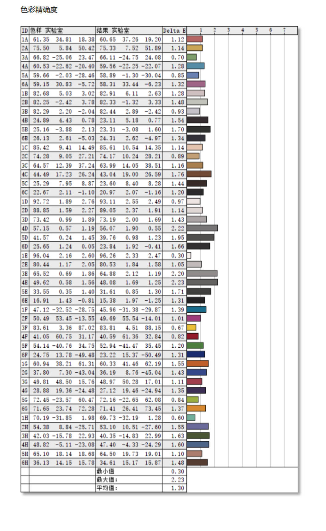 光度曲线部分,OSD内置标准曲线为2.2,实际测试与标准2.2曲线基本玩全匹配(偏差值0.00)。色温一致性方面,40%灰阶以上色温在7050K~7120K之间,仅70K的色温偏差应该是出厂校色的功劳。