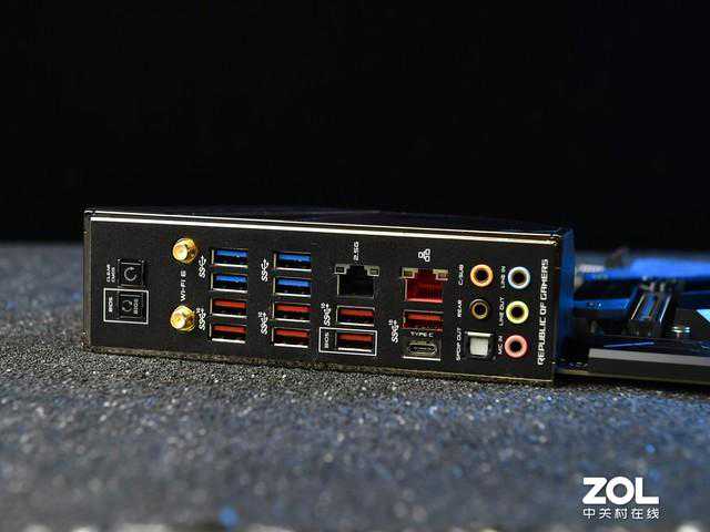 这款主板I/O区域规格相当可怕,预装了一体化I/O背板,配有一个清空COMS按钮和一个BIOS快速升级按钮;一个IntelWIFI6AX200无线模块,而接口方面准备了4个接口,7个接口,一个接口,一个2.5Gbps带宽的网络接口和一个千兆网络接口,除此之外还有5个3.5mm音频接口和一个光纤接口。
