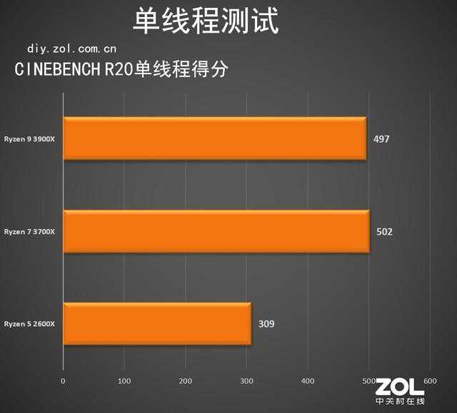 差距很明显,在CINEBENCHR20的单线程跑分中,Ryzen73700X和Ryzen93900X仍旧大幅领先,甚至超过Ryzen52600X单核性能60%左右。
