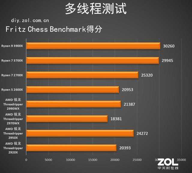 FritzChessBenchmark是测试CPU多核心性能的经典软件,这款软件最多支持16线程同时运算,因此线程撕裂者和12核心的AMDRyzen93900X都只会到16线程。