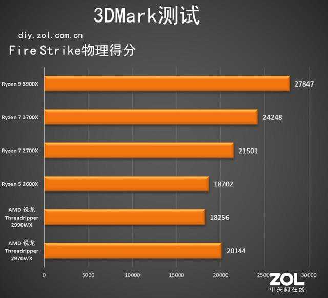 FireStrike是基于DX11环境的图形能力测试,在CPU的物理的分中,AMDAMDRyzen73700X和Ryzen93900X两款三代锐龙仍旧领先。