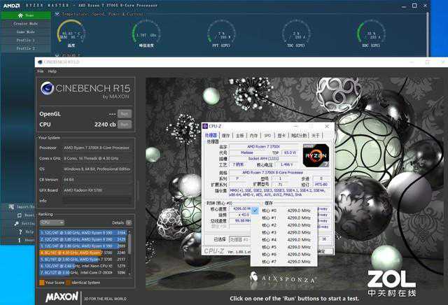 Ryzen73700X同样正常水冷超频普遍在4.3Ghz左右,再往上性能会极不稳定,通过CINEBENCHR15的对比,发现其性能提5%左右,而温度为85℃,负载较大。