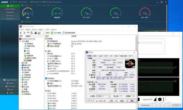 我们使用了AIDA64对两款软件进行了拷机的测试,测试时间为一个小时,因为AIDA64还没有新版本所以只能从二极管的温度中读出结论,因此我们借助AMD官方RyzenMaster软件,对温度做了监控。