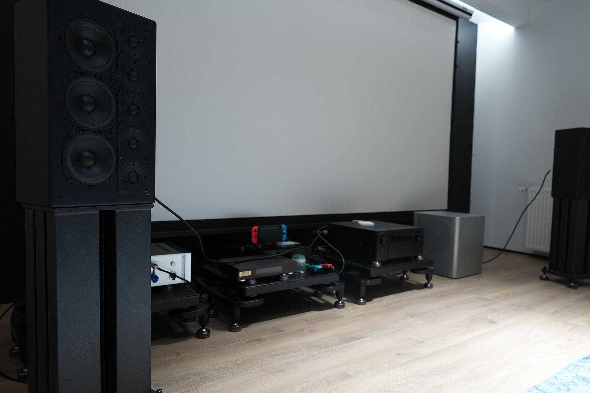 主箱中置KKK700三支,环绕K700S一对,天空声道IW600四支,低音炮PiegaPS12。