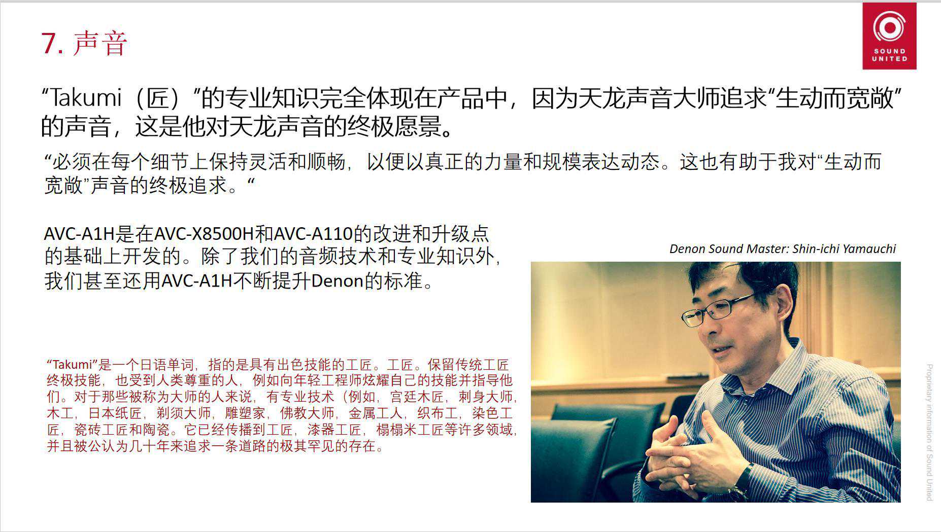 A1H的声音被天龙声音大师定义为“生动而宽敞”,“必须在每个细节上保持灵活和顺畅,以便以真正的力量和规模表达动态。这有助于我对‘生动而宽敞’声音的终极追求。”