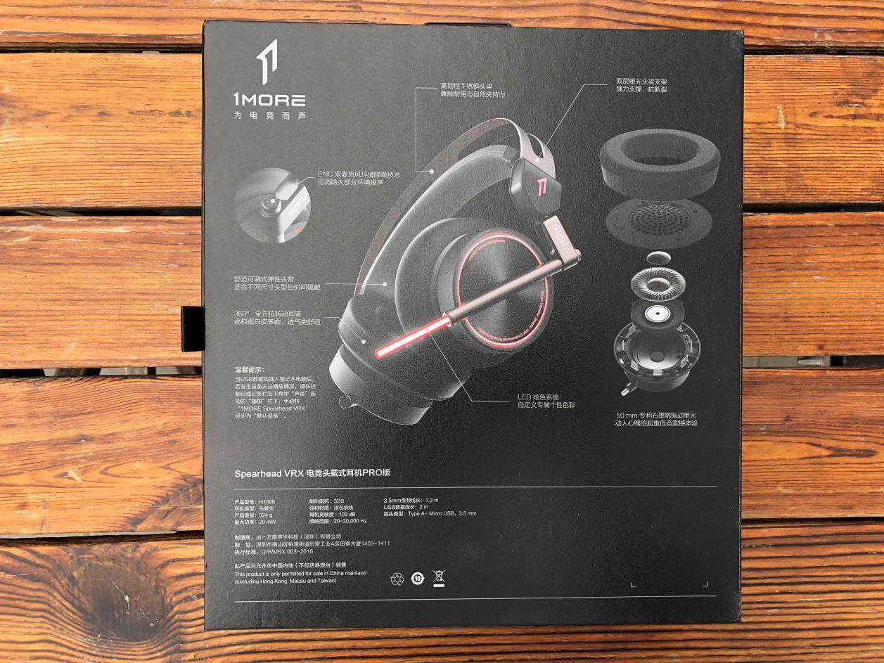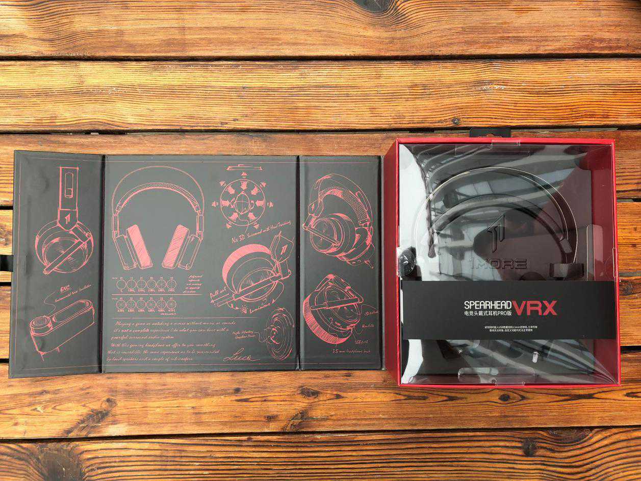 产品上手,首先来看看它的包装,1MORESpearheadVRX电竞头戴耳机Pro版依然延续性的采用了一贯的黑红配色硬壳包装,采用这种充满机能感的配色,目标受众是哪些群体显然不言自明。包装背景依然是醒目的双向红色矛头,配上正中的耳机图案,设计感不错。