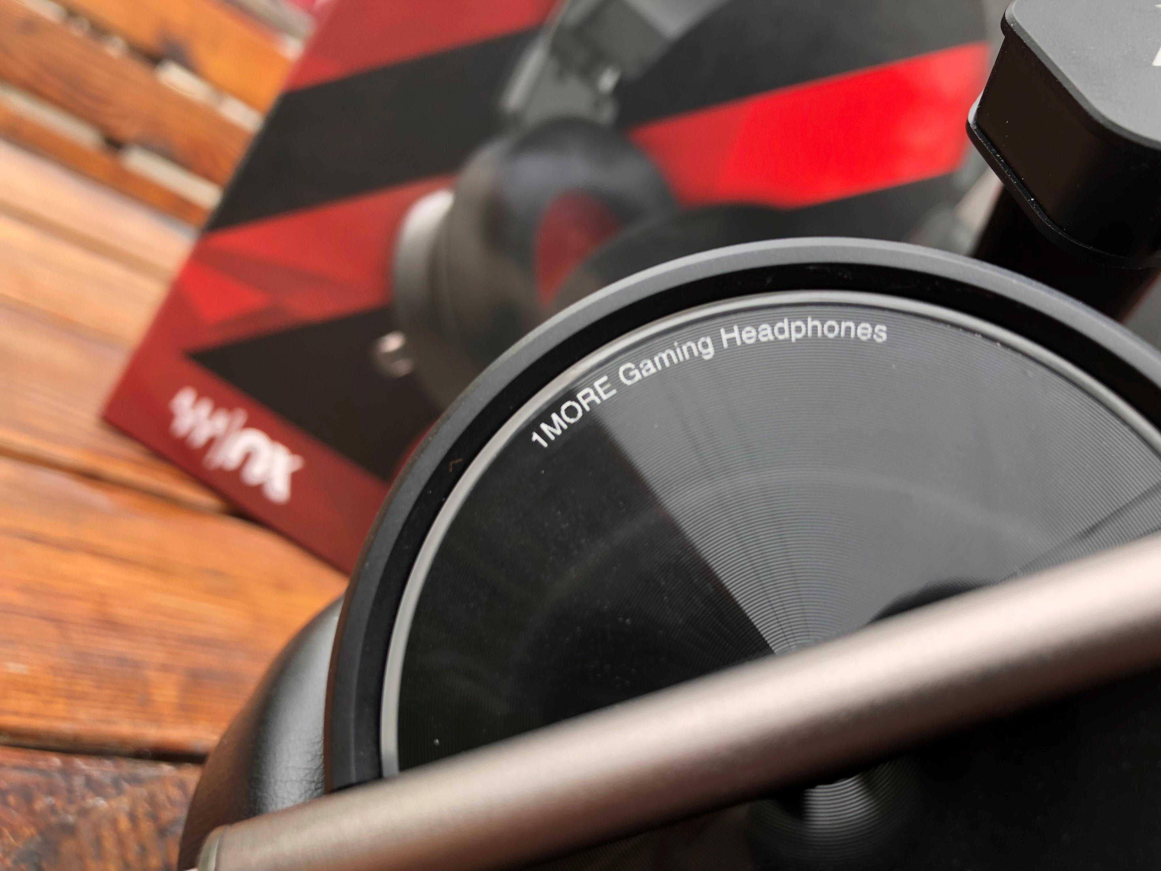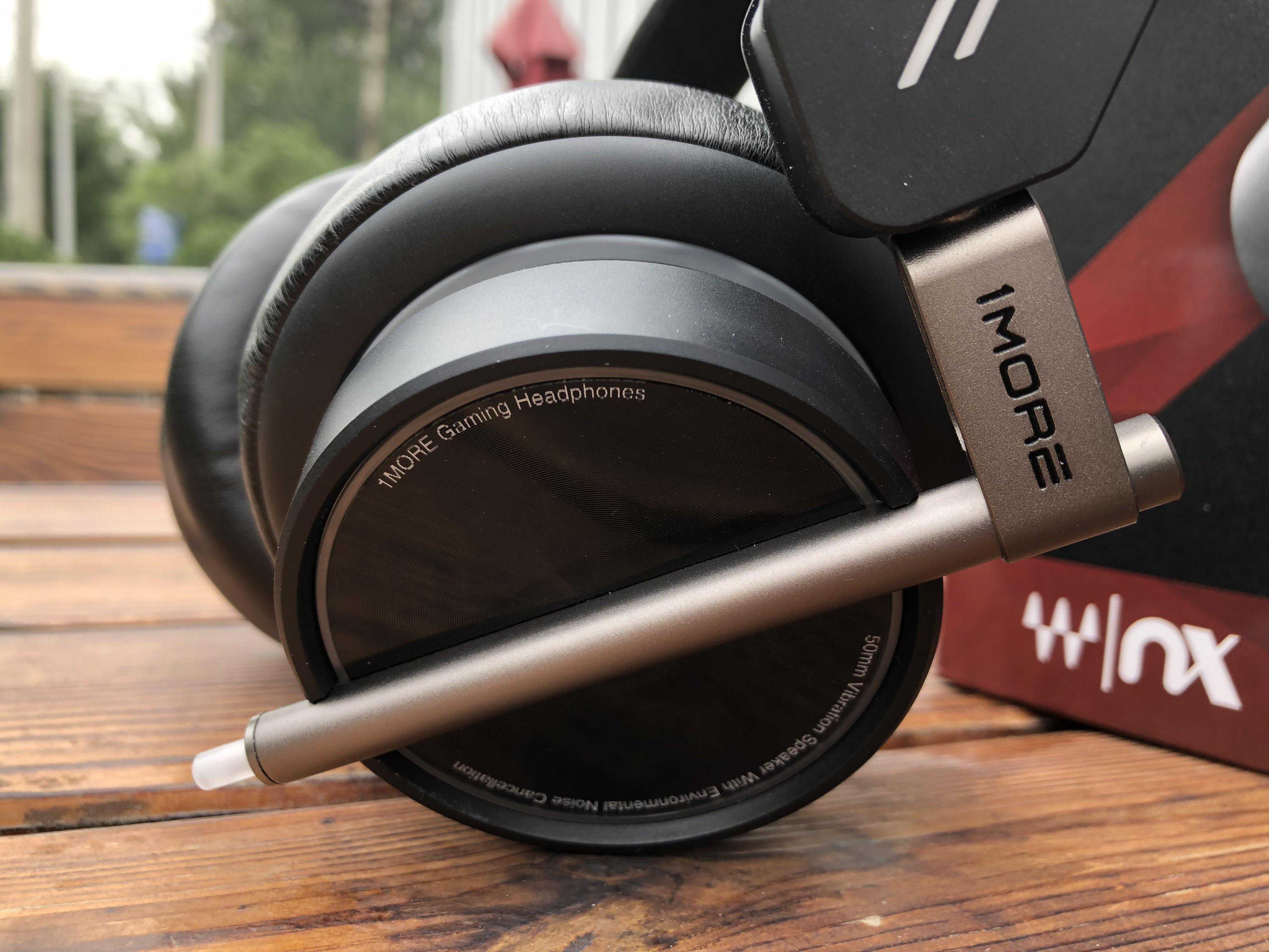耳机侧面的一圈有着50mmVibrationSpeakerWithEnvironmentalNoiseCancellation的字样,表示该耳机为50毫米直径的,具有消除环境噪音能力。上面的半圈字样是1MoreGamingHeadphones,表明了该机的“竞技血统”。仔细看可以看到,音腔外壳表面有精细的CD纹雕刻,耐磨且不沾指纹。