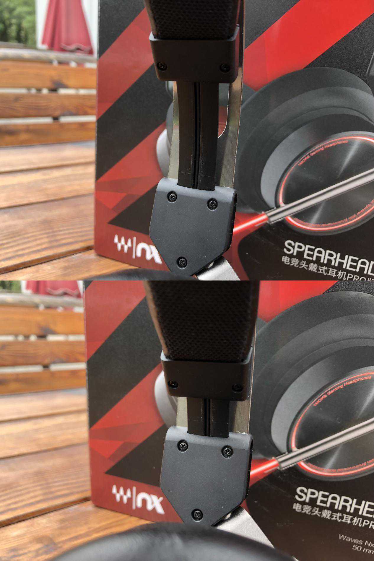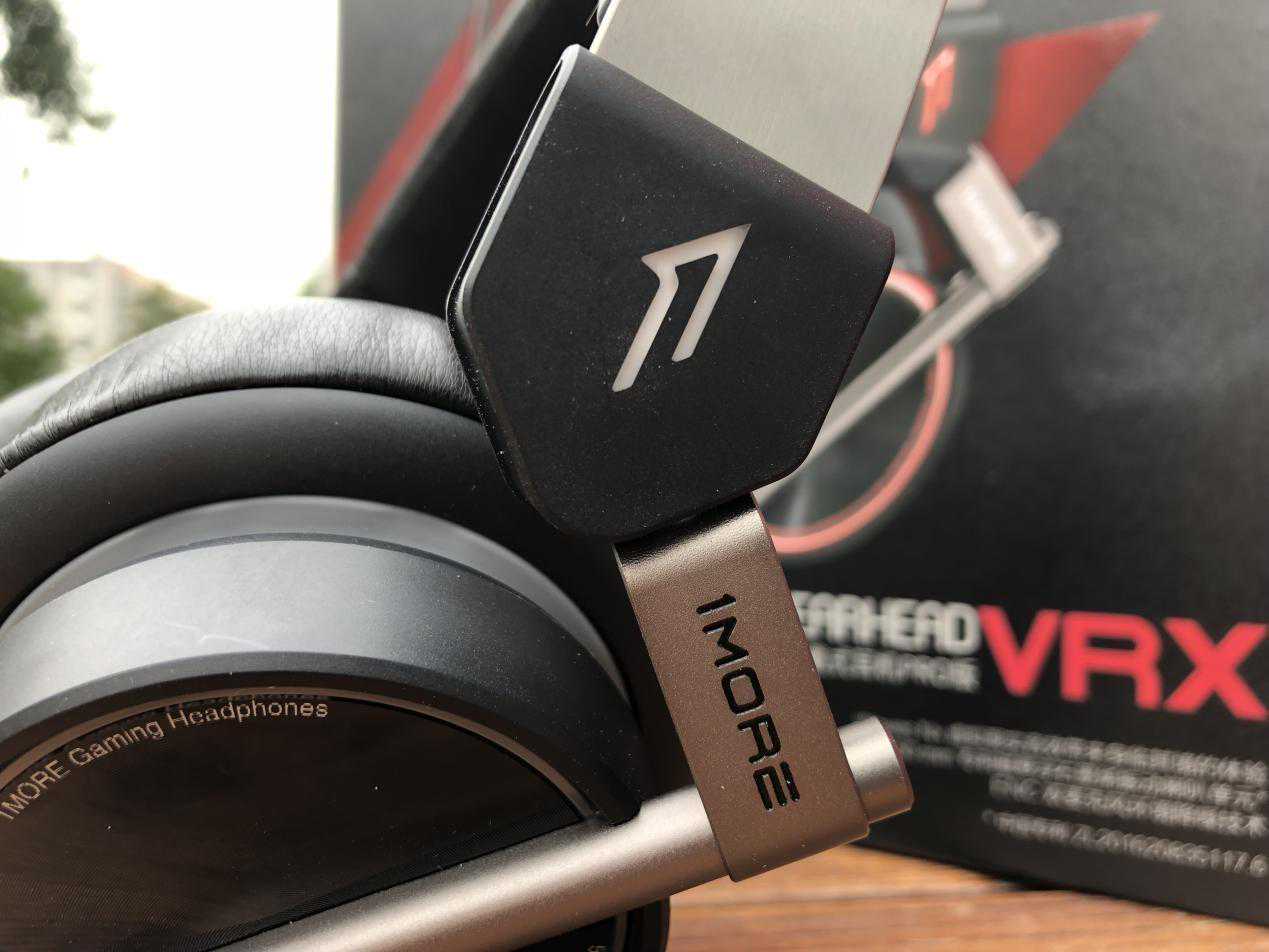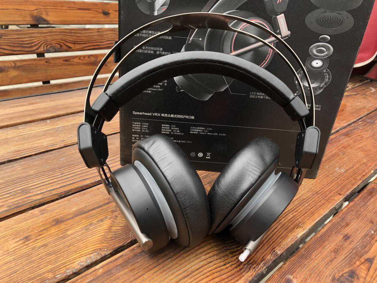 接下来就是我们的主角,1MORESpearheadVRX电竞头戴耳机Pro版的机体,黑色的耳机机身和金属的横梁搭配的很有高级感,整体造型在第一眼看来就很有竞技感。