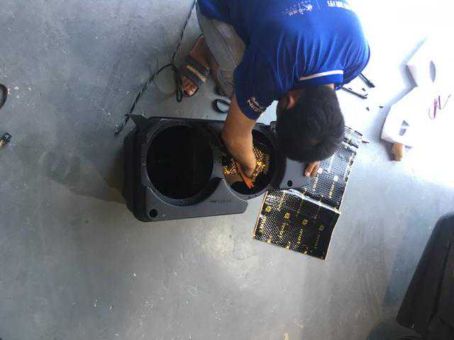 四门隔音处理:在车门钣金上贴上环保高效的狮龙隔音材料,提高钣金刚性,从而减小钣金共振噪音!隔音之后,车门变得更加扎实,密封的车门除了能减小风噪入侵之外,还能让车门如同一个箱体,有利于喇叭发挥更好的音质效果。