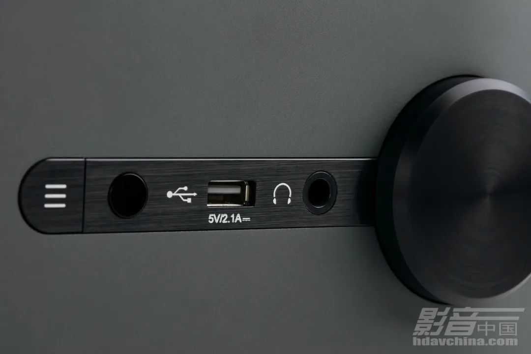 DeltaPreMKII前级前面板右手边的旋钮,这边还提供了耳机输出接口以及前置USB接口,可以给手机、平板充电,可以播放手机、平板里面的音乐