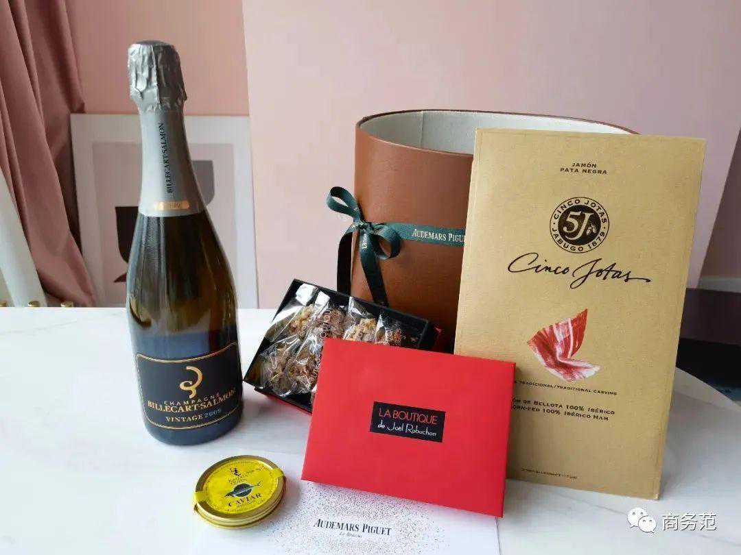 即便是在线上看展,也不能缺少仪式感。像爱彼就在线上发布会开始前,寄来了由香槟、火腿和巧克力组成的大礼包↓