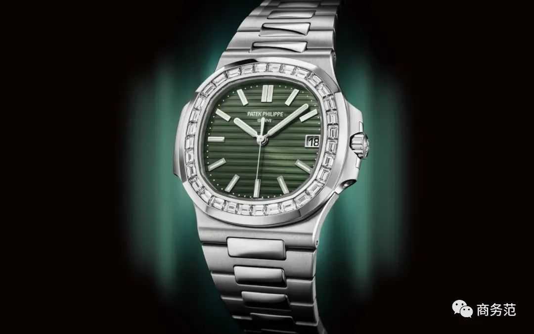 另外一款橄榄绿表盘鹦鹉螺/1300A-001是一款钻表,表壳上镶嵌了32颗长形切割顶级无瑕威塞尔顿美钻,总重约3.6克拉。