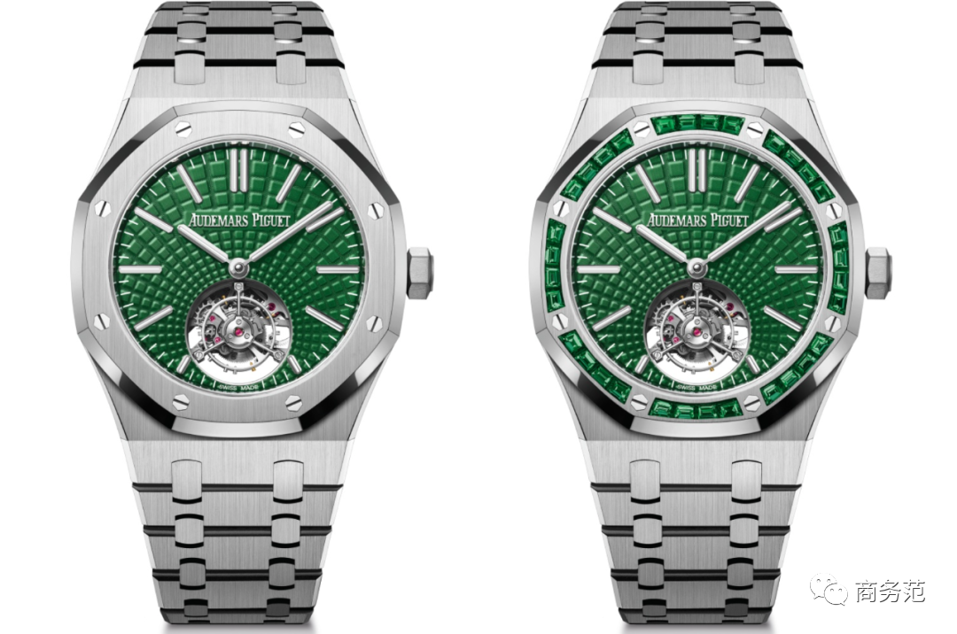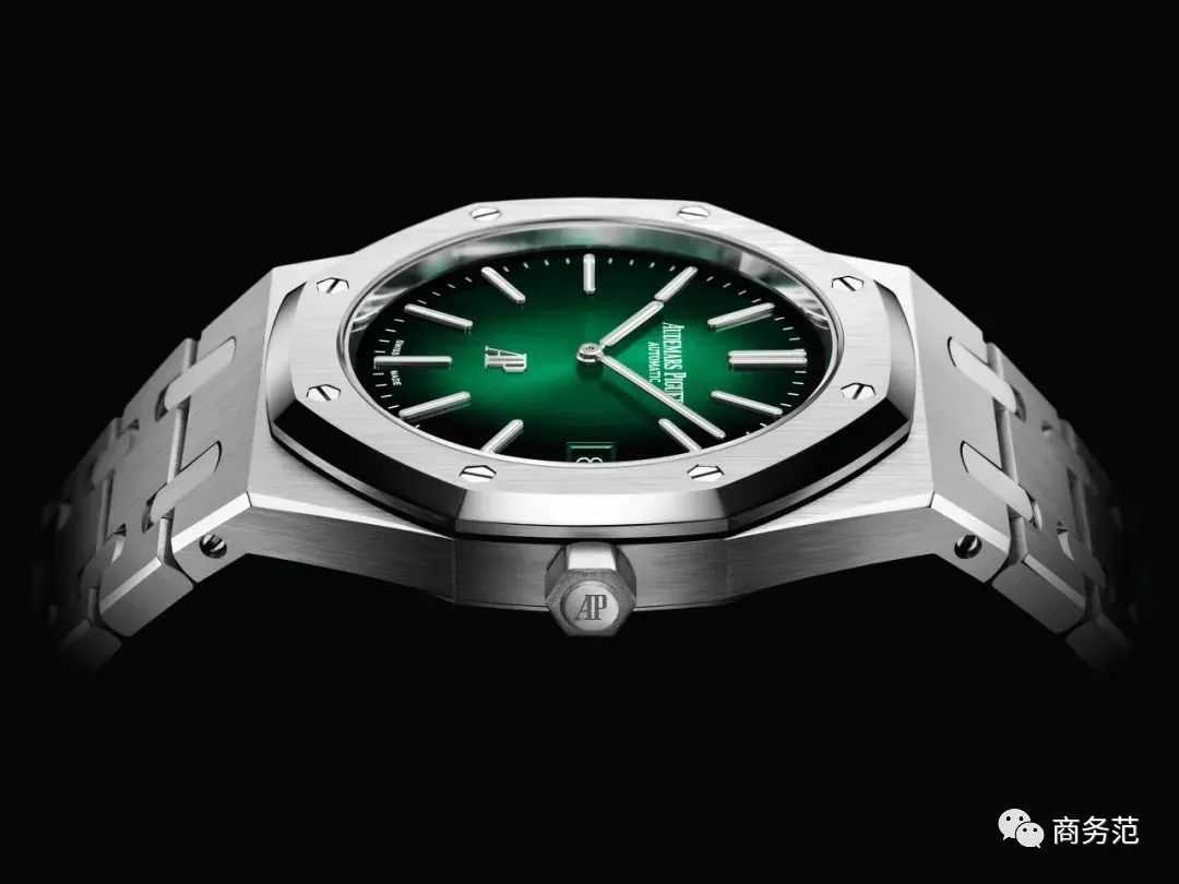 按照表圈这几年“逢绿必火”的原则,爱彼这一波新表中,最有存在感的必须是绿表盘的皇家橡树↓