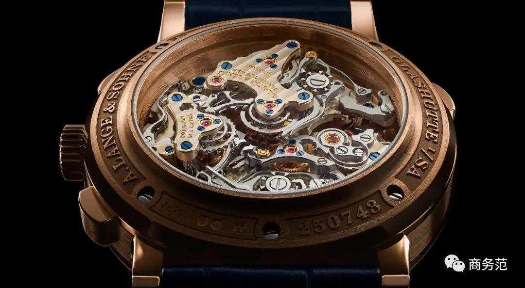 代表了精湛工艺的三重追针腕表,厉害之处是可以进行长达12小时的追针计时,在机械计时腕表中非常罕见。同时,还配备了飞返功能,能控制三对计时指针,让人不得不感叹,朗格总把复杂工艺玩得炉火纯青。