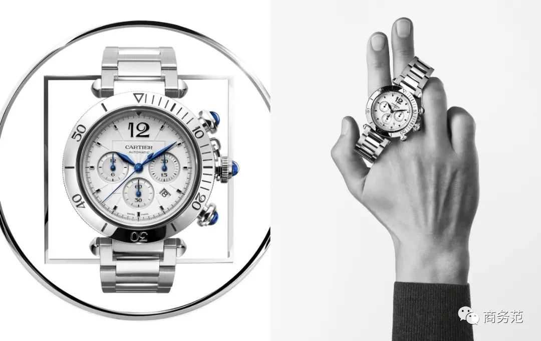 其中近来势头很猛的PashadeCartier,新出了一款41毫米计时码表,阳刚大气。旋转表圈、镶嵌凸圆形宝石的按钮,很是张扬醒目,富有力量感。