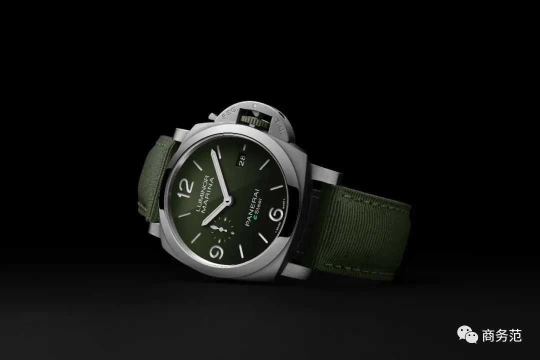 另一款LuminorMarina庐米诺系列eSteelTM腕表就比较特别了,它总重152.4克,其中89克为环保再生物料打造的零部件,非常轻巧,表盘有深蓝色、岩灰色和墨绿色三种颜色可选,墨绿色表盘款仅在沛纳海专卖店和电商平台发售。