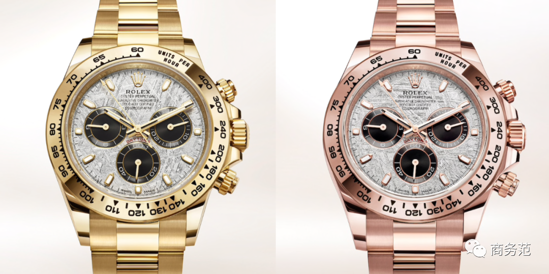 新推出的蚝式恒动宇宙计型迪通拿,则配备了金属陨石表盘。