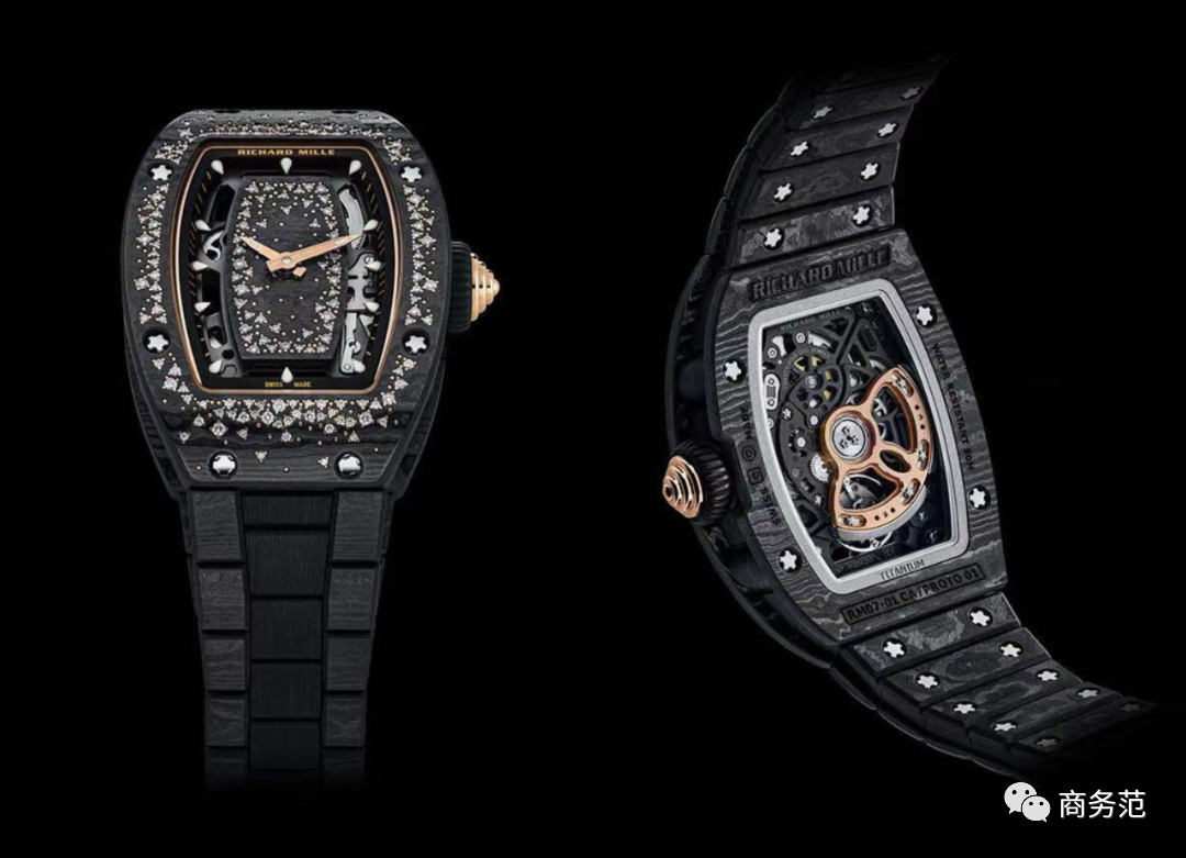 先说说两款RM07-01腕表(左:RM07-01StarryNight女士腕表;右:RM07-01自动上链腕表链环款),外观和工艺兼具,又酷又美。