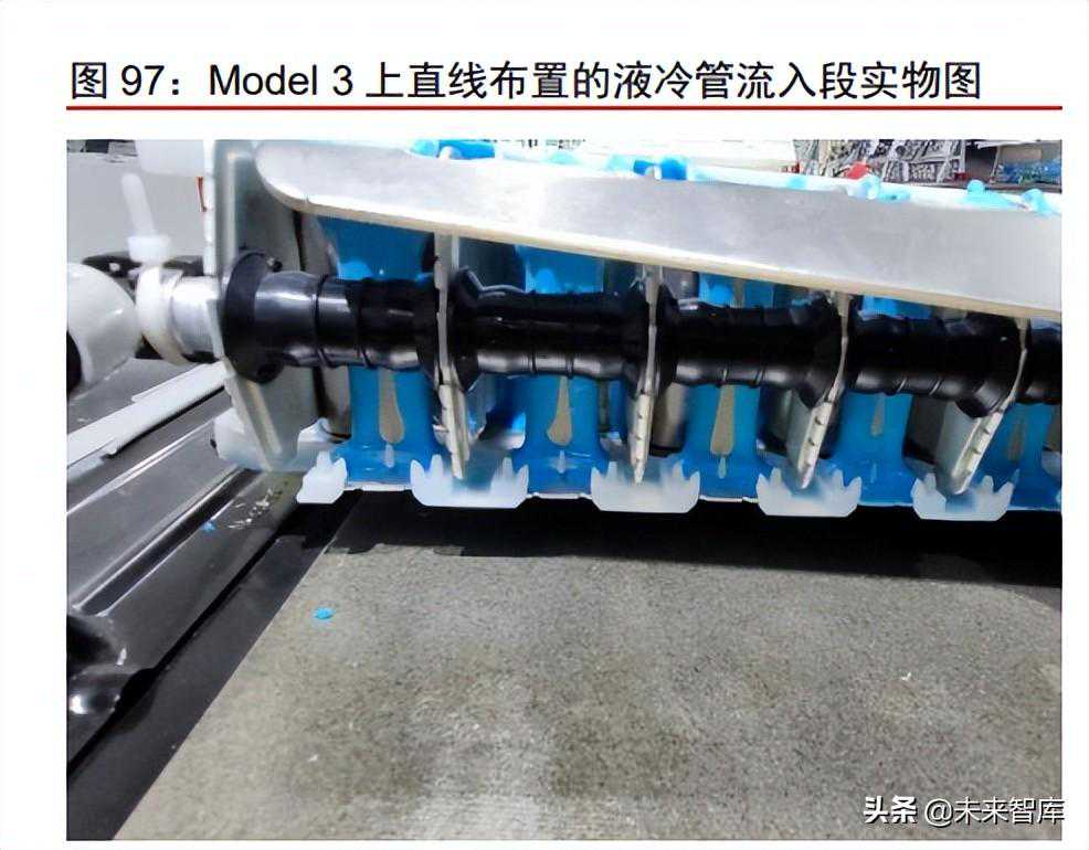 特斯拉早期的ModelS/X电池模组中,冷却管路采用蛇形布置的冷却管,即长冷却管穿越于整个电池模组中。
