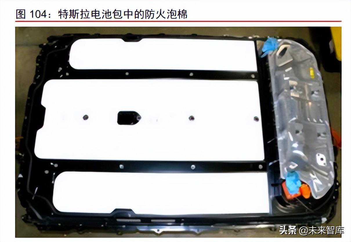 灌封胶加发泡泡棉,导热阻燃设计升级。早期ModelS/X中依靠液冷及热管理系统对电池包热失控进行软防控。随着电动车自燃事故的发生以及法规层面对热失控要求趋严,特斯拉采用了灌封胶加发泡泡棉的阻燃方案。类似于电子元件中灌封的概念,特斯拉在动力电池包中采用灌封胶填充圆柱电池间的空隙,起到避免电芯间传热、提高对冲击的稳定性,提高电池包整体的热稳定性和机械稳定性。同时,特斯拉在上盖中加入隔热发泡泡棉,将热量阻绝在客舱外。