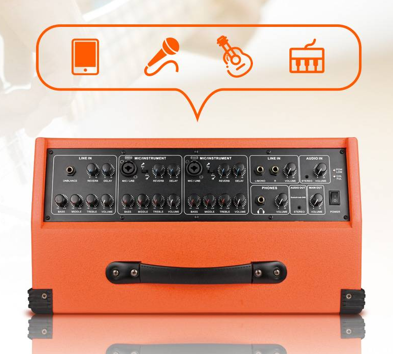 得胜OP-8弹唱音箱拥有多路音频接口,能接入吉他、麦克风等设备;特设手机直播接口,可连接手机进行直播。
