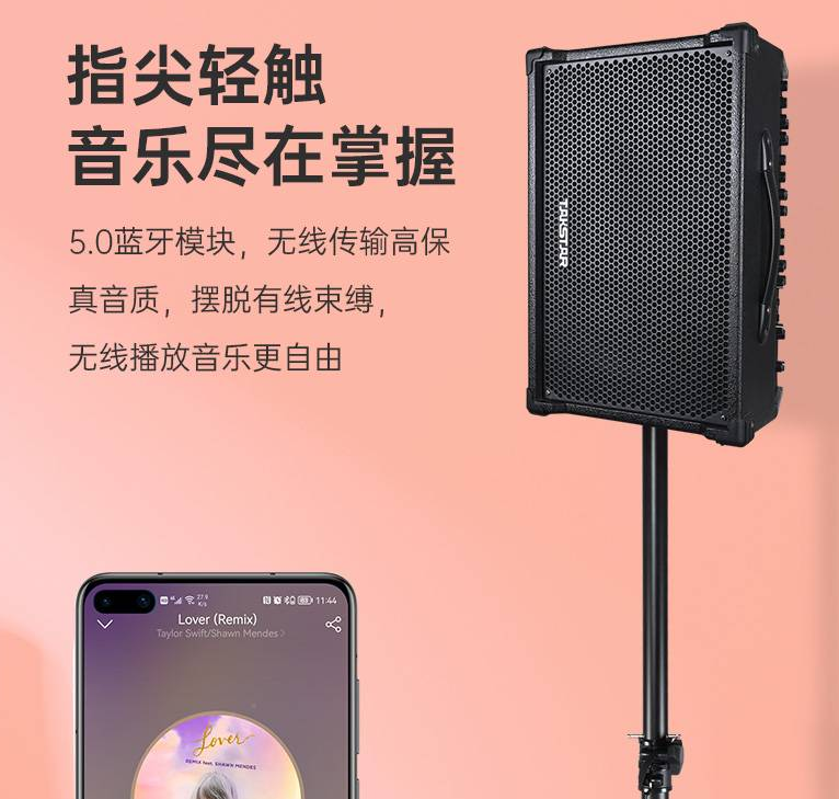 得胜OP-8弹唱音箱内置蓝牙模块,可无线连接手机进行音箱播放,能高保真输入音质。