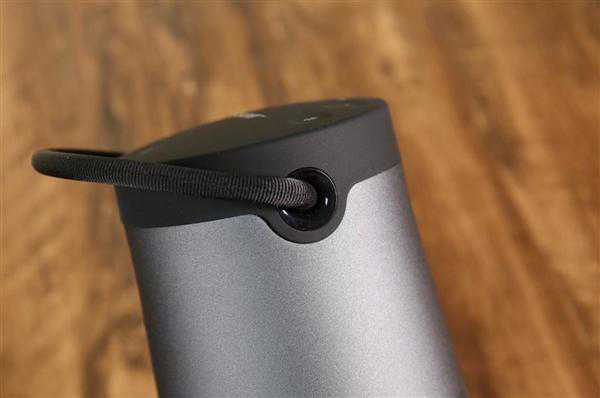 BOSESoundLinkRevolve+的机身细节,铝合金磨砂材质表面浮现的银白闪光带来了相当强烈的凛冽质感。